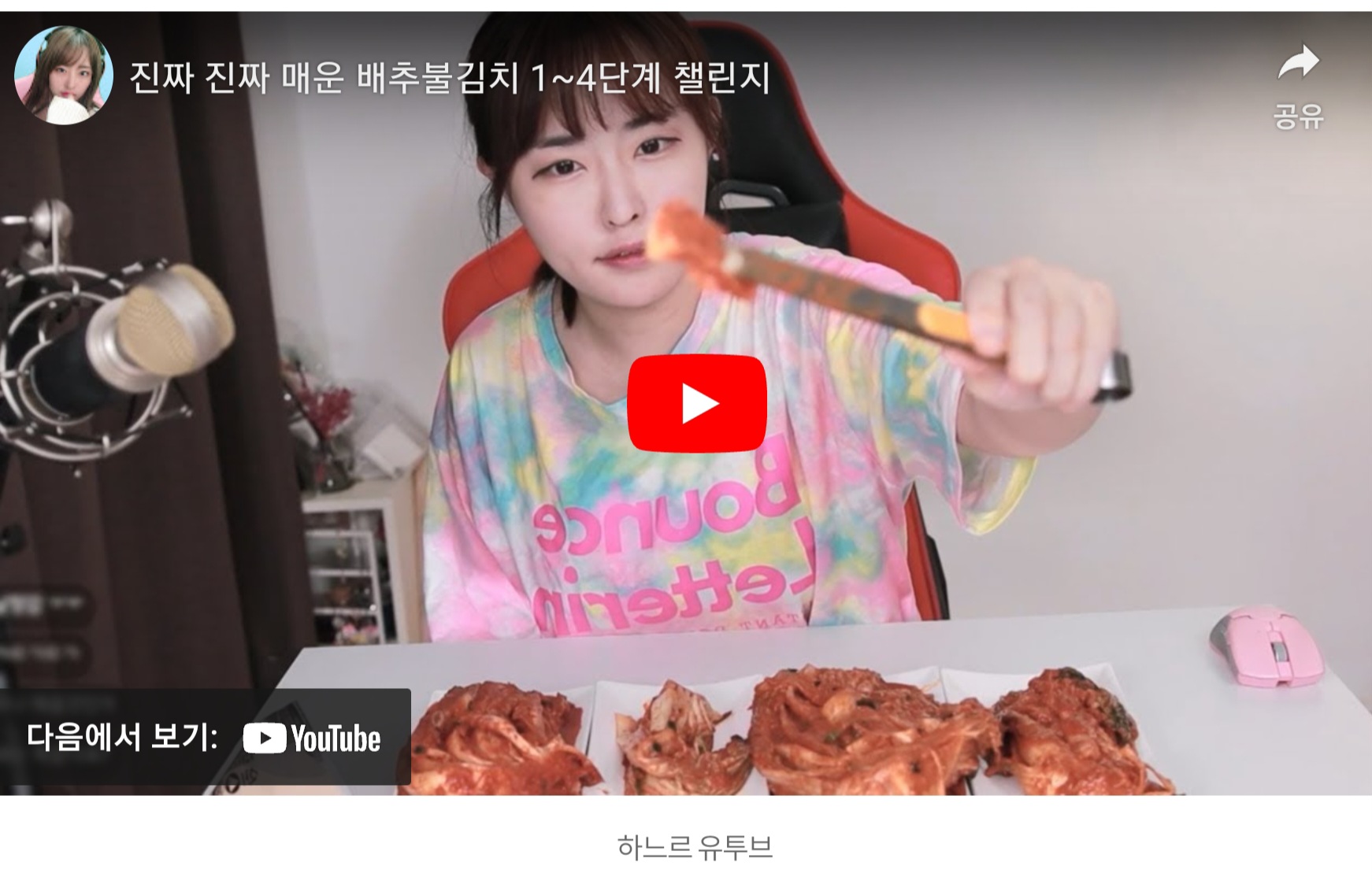 하느르 진짜 진짜 매운 불김치 1~4단계 챌린지