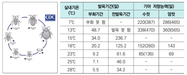 있는 반면, 열대빈대는 일생 동안 약 50개의 알을 낳음